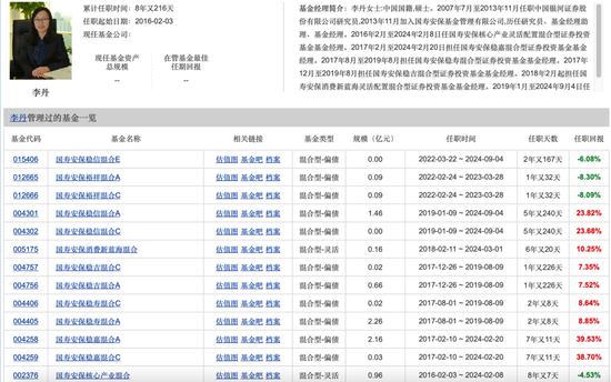 李丹,任职期间为2016年2月3日至2024年2月8日,任职回报率-4.53%。